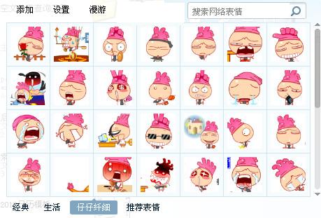 仔仔纤细表情包含期待 傻笑 鄙视 跳舞 神灯 财迷 耍酷 杂技 害羞等表情,非常可爱。