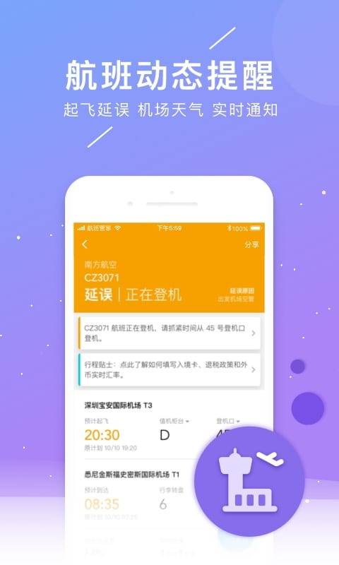 2、航班动态更新最及时,通知最快捷