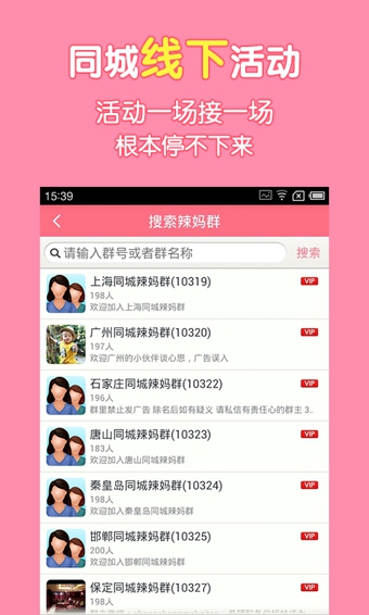 定位搜索附近,发现身边趣味相投的辣妈让交流跨越互联网的距离,与辣妈面对面分享生活中点滴成为现实生活中的最佳闺蜜。