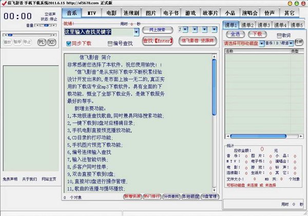 信飞影音是从实际下载中不断积累经验设计开发出来的,是市面上独一无二的,真正实用的下载店专业mp3下载软件。具有全面的下载功能,概全了全部下载业务,是做下载服务最好的帮手。