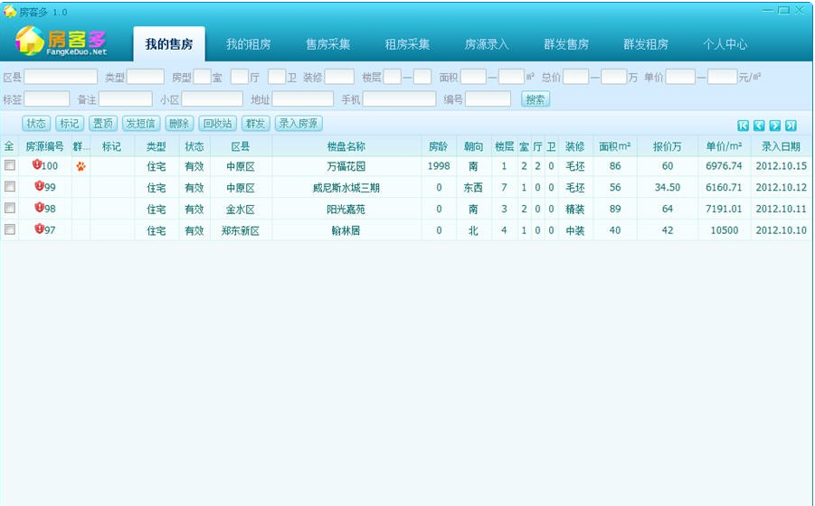 房客多是智森科技为房产经纪人研发的一款集房源采集、房源群发、房源管理为一体的在线办公平台软件。房客多房源采集软件可以帮助房产经纪人采集各大网站上业主发布的个人房源信息,也可以将房源信息自动发布到各大房产网站和分类信息网站上面,通过网络技术解决经纪人寻找、发布房源低效、录入和发布房源工作枯燥等问题,提高了经纪人办公效率,大大降低了经纪人的工作强度。