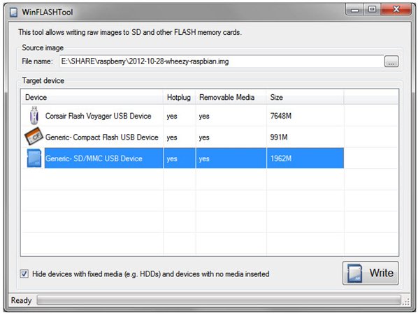 把镜像写入闪存内存卡(WinFLASHTool) 1.0 绿色免费版 WinFLASHTool是一个使用磁盘映像创建内存卡的软件。WinFLASHTool是一个开源工具,它允许原始磁盘映像写入到闪存卡。该工具支持多分区的镜像和单分区卡,并允许预览、擦除分区,然后覆盖卡。从原始磁盘映像写入闪存存储设备。WinFLASHTool 允许你写你。单个和多分区卡上的 IMG 文件 / 图像。