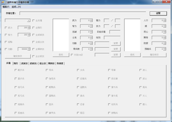 三国群英传5存档修改器是一款功能强大的《三国群英传5》内存修改工具,可以修改的内容非常之多,例如属性、武将等等。三国群英传5修改器是目前最完美属性内存修改器包括了最全面的修改武将、更改头象、修改城市、修改国库物品等功能.