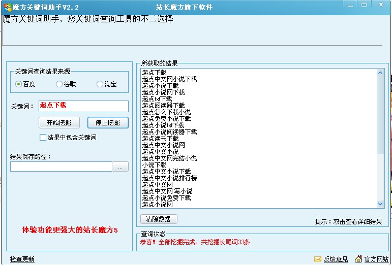 魔方关键词助手 V2.3 官方最新版下载 魔方关键词助手是站长魔方旗下一款百度,谷歌,淘宝长尾关键词查询软件!