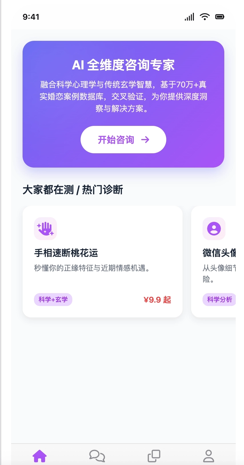 Love AI投喂了大量基于面相、手相、命理八字、奇门遁甲、易经占卜等玄学知识库以及科学、行为科学、心理学、潜意识等学科的知识库,利用科学加玄学的方式对情感、婚姻进行全维度的解析。