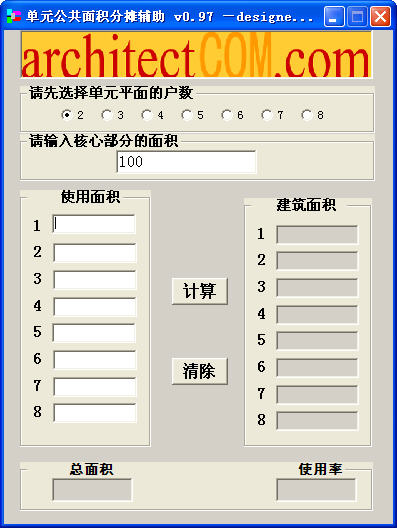 单元公共面积分摊辅助是一款免费的公摊面积计算软件,非常实用,用来计算住宅单元公共面积分摊