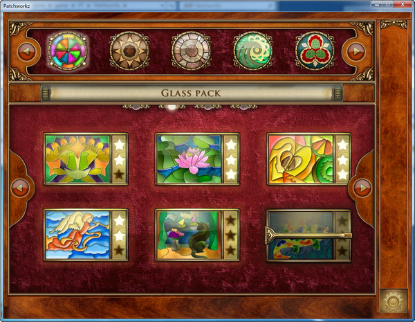 创意:游戏根据拼图素材的不同材质,玻璃、木头、石板、纸质、纺织品、金属,分为6大关卡,每个关卡中有24幅图。完成一个关卡中的24幅图画,即可解锁对应关卡的挑战模式,即在规定的时间内完成每幅拼图。