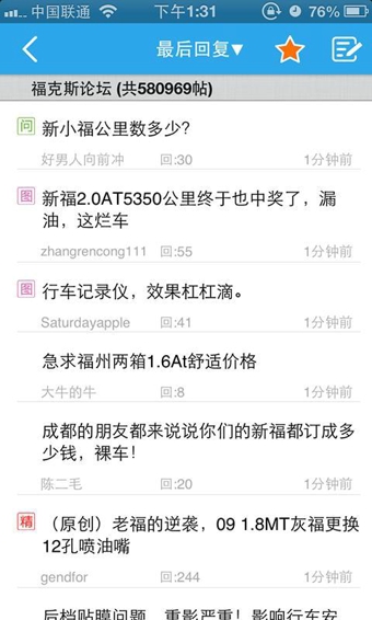 4.我的论坛:我的车系、地区及关注的论坛,我回复过的贴子及我发布过的主贴