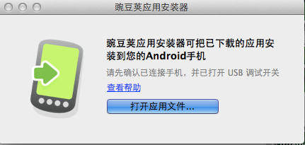 Mac版豌豆荚Android应用安装器是豌豆荚实验室的工程师用业余时间做出来的专门为Mac系统提供Android应用安装器。有些人喜欢OTA下载,有些人喜欢自己下载了传手机里安装。更多的人可能喜欢双击安装,简便、快捷。这个Mac版豌豆荚Android应用安装器,安装好后,用USB连接手机与电脑,就可以直接双击APK文件安装了。