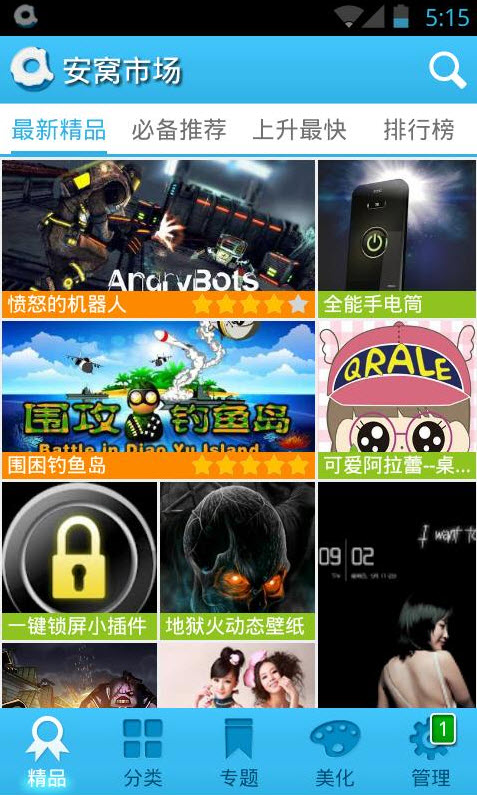 安窝市场是一款专为安卓用户打造的软件下载平台,这款软件为用户提供了海量的游戏软件、主题、美化、壁纸、铃声快捷免费下载,让用户可以想下什么软件就可以下什么软件。