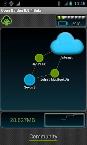 开放花园 v2.4.4 安卓版 开放花园可以在你的手机和笔记本电脑之间形成一个无线点对点网络,只需在你的Android手机安装这个软件,并在笔记本电脑上也安装开放花园,设备就会自动连接。