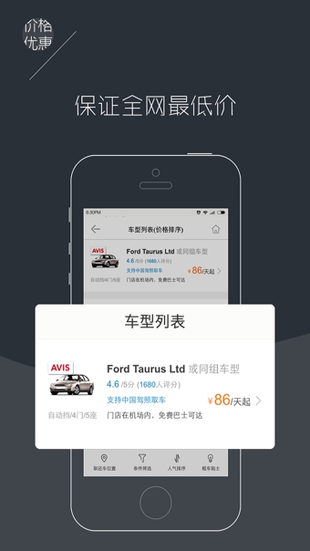 1.方便易用,一键搜索对比全国/全球主流连锁租车公司,省去逐家对比的烦恼,给你最划算的选择。2.数据实时、有效、权威,已覆盖国内主流城市1400个租车门店近300款车型,及国外60多家国际顶级租车公司数据。