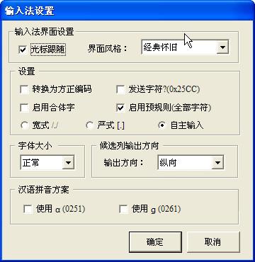 字符的输入方法:如果输入音标处在输入条第一位置,则直接输入后面的音标;否则选择对应的数字,接着输入后面的音标。完成所要输入的字符串后,按空格键上屏。