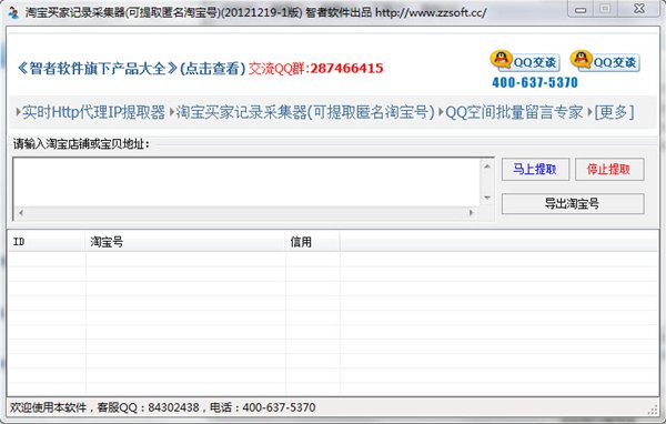 淘宝买家记录采集器是智者出品的一款针对指定淘宝卖家/店铺/宝贝进行批量采集淘宝买家号的工具,可自动破解识别匿名的买家记录,支持导出进行二次利用!是淘宝营销和数据分析的必备利器!