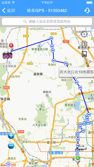 可以查询附近班车位置(搜索范围可设置)、查询班车线路、查询某地点班车、到某站点路线查询、收藏站点等