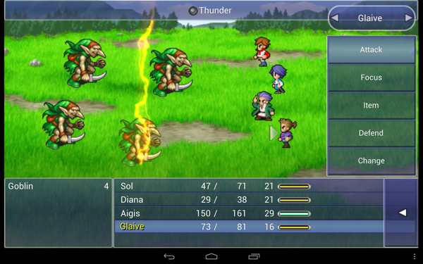 游戏画面采用了类似于早些在PSP平台推出的“FF4完整版”一样的清晰2D风格,游戏在背景方面刻画的十分到位。无论是山脉、浮云以及洞穴还是城镇中的细节都展现十分清晰,而在战斗技能方面本作也进行了优化,使本作攻击特效变得更加华丽。标准的水晶旋律和胜利音乐,急促的战斗配乐和宁静的城镇音乐。每一点都会引起你当年玩FF的那份共鸣!画面是基本得不到什么好感度了,来说说音乐。个人认为FF7甚至FF10以前的植松伸夫式FF音乐是这个系列带给音乐界的礼物,很多玩家现在或许已经不玩游戏,不看游戏资讯,但是让他们听一听当年历代FF的BGM合辑,会随着那些熟悉旋律心潮澎湃的绝对不止我一个。《FINALFANTASY:Dimensions》基本上继承了系列的音乐风格,无论是开头的水晶序曲还是陆行鸟的BGM或者是战斗音乐,都是大家耳熟能详的FF名曲了。此外内购项目中有一个是重编曲的BGM包,玩家购买了重编曲之后,在设定项里选择BGM类型,就能在游戏中听到另一种风格的音乐,水田直志巧妙地用更富含节奏和欢快感觉的电子乐风格加入到原有的BGM当中,让玩家的听感更为舒适,还是很成功的。
