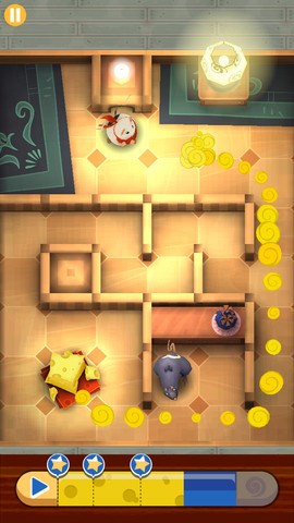 绘制奶酪的香味线索给小老鼠,小老鼠就会循着香味一路找到奶酪了。48关的谜题等着你去挑战。但是注意路上的障碍喔。不但有开关控制门,路上还会有小老鼠的天敌在等着它。滑动你的手指,去指引小老鼠寻找奶酪吧