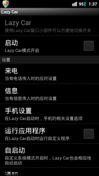 手机自动接听LazyCar是一款针对驾车人士设计的智能软件。它可以自动接听电话、自动回复短信、使用TTS语音朗读短信、自动运行程序、切换和改变各种手机设置等。