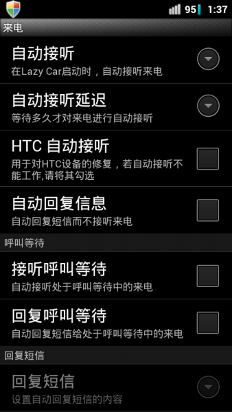2.自动接听的对象类别、延时秒数、是否短信回复可作设定;