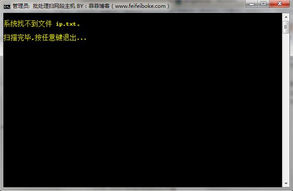 使用帮助:为了方便大家使用,请直接打开 ip.txt 输入要扫描的ip,比如192.168.1.1(内网)或 119.147.8.12(外网)保存后,双击运行 ip.bat 即可看到结果。ip.txt 里只能放一个ip地址哦!