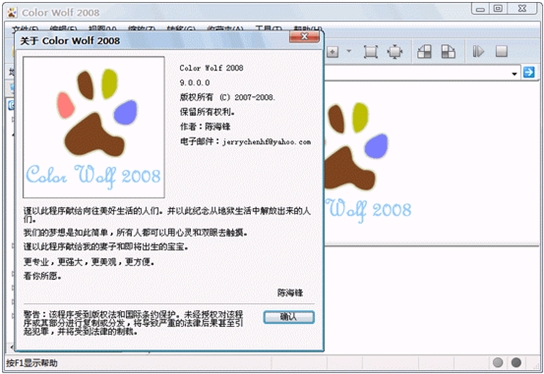 Color Wolf 2008 10.9.6.4 简体中文绿色免费版 Color Wolf是一个功能强大,气度非凡的看图软件。能以多种模式浏览JPG,GIF,PNG,PCX,BMP,ICO,CUR,TIFF,TGA,WMF等多种图像格式文件。具有缩放,旋转,缩略图,自动桌面滚动等多种功能,并具有强大的扩展能力。无需安装
