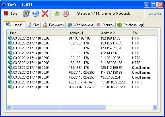 York是一款免费的网络流量监控工具,它的最大特点就是能够捕捉电脑使用者的网络操作,并以幻灯片方式显示出来。同时程序也会进行HTTP、FTP、POP3、SMTP、VNC 和AIM 密码等流量监控。每当上传或下载来至 HTTP 和 FTP 服务器上的文件时,也会将其捕捉并记录下来。