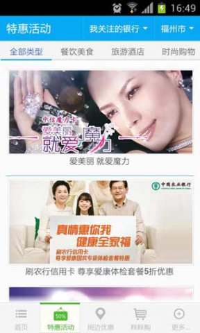 1.信息订阅,依据不同银行、行业、城市订阅优惠折扣信息;