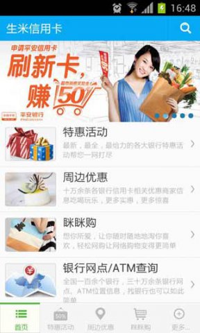 生米信用卡旨在让您充分享受生活便利,持续提高消费品质的移动生活应用软件,这是国内真正意义上第一款有实用性价值的信用卡消费优惠类生活应用软件,具有银行多、覆盖广、商家全、信息大、更新快等其他类似软件不可比拟的优势。