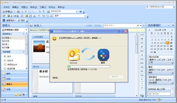 1.实现蜡笔同步与Outloook里的联系人、日历自动同步