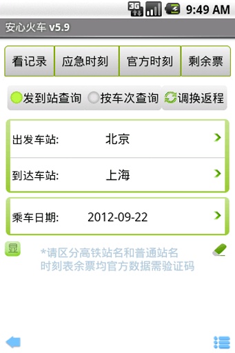1.时刻表与剩余票数据均直接查询自官方网站,从7月1起,官方网站需要输入验证码。如果您需要准确无误的列车信息,本软件是您的不二选择!2.提供时刻表,余票,正晚点,代售点等全面准确数据。