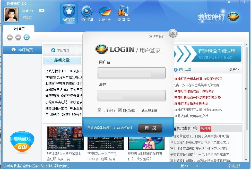 17173玩家登陆模块在首页左上角,虽然神灯是一款永久免费的辅助工具,玩家不登陆也能正常使用大部分功能,但是登陆后的玩家可以使用所有功能并会得到我们官方提供的一些福利,您懂的,所以推荐您登陆哦。 版本更新