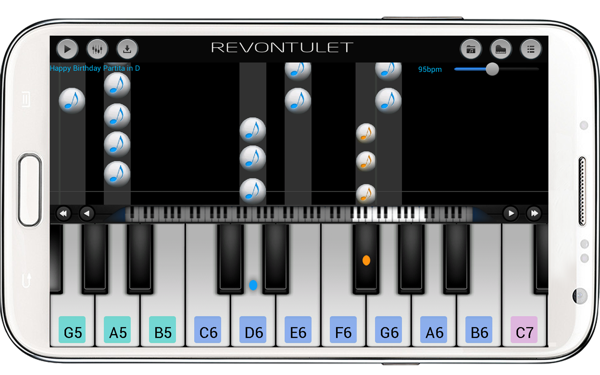 6. 支持5种键盘音效: 钢琴, 八音盒, 风琴, 电子琴, 音乐合成器