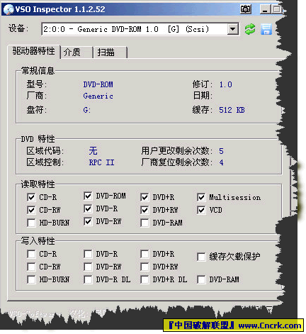 VSO Inspector 是出品 BlindWrite 的软件公司的一款免费软件,可以向您报告您的DVD光驱、刻录机的硬件信息,及具体支持的读取、刻录等功能,还能检查光盘是否存在读取错误。