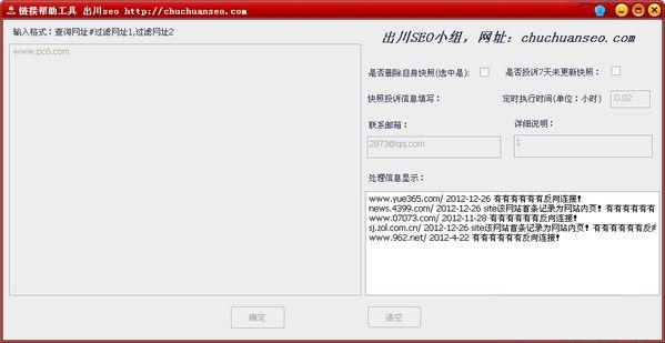 链接帮助工具,可以检查网站友链是否有效,结果自动生成在“数据”文件夹里 1.网站快照更新自助软件 2.网站入侵报警器 3.简单实用打开既可以使用,软件有相应的设置提示