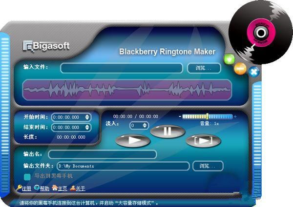 Bigasoft BlackBerry Ringtone Maker是一款黑莓手机铃声制作软件并可以转换音频格式,Bigasoft BlackBerry Ringtone Maker可以帮你截取任何一段音乐和视频片段,然后制作出独一无二的黑莓手机铃声。支持转换的音频格式有MP3, WMA, WAV, RA, M4A, AVI, MPEG, WMV, DivX, MP4, H.264/AVC, AVCHD, MKV, RM, MOV, XviD, 3GP 。