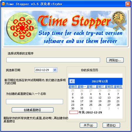 去除试用版软件时间限制(Time Stopper) V3.5 中文版 Time Stopper是一个破解软件,用来破解软件的时间限制,永久试用软件。