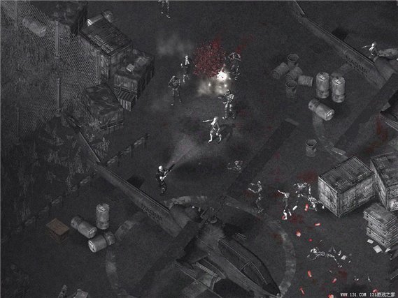 画 面游戏的界面和孤胆枪手2代近似,采用了倾斜45度视角,非常重视细节的描绘,人物和场景的立体感更显真实,射击的弹壳和喷溅的血液都被刻画的细腻逼真,武器的发射效果也更加刺激。