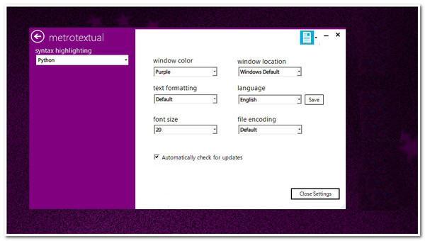 MetroTextual灵感来自于微软的Metro设计方案。它的设计是视觉上吸引人的,完美替代Windows记事本。您可以用它来阅读纯文本或富文本文件,而不管他们的Windows字符编码。