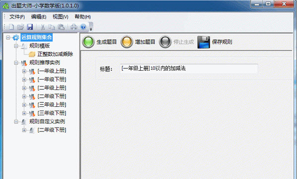 出题大师小学数学版可以组建自己的出题规则,保存规则,也可以保存题目,还可以另存题目,直接打印(均含答案).目前是正整数出题规则,以后还会推出小数,分数的规则.包含+-×÷()[]{}和一元一次方程的任意组合,对计算过程中的取值可以设定范围和简单的数字过滤。