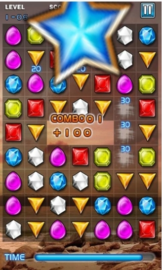 将三个或三个以上相同颜色的钻石排在一起即可将它们消除掉。【游戏特点】