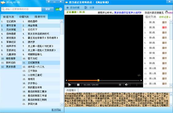 开心听书是为广大有声小说爱好者研发的一款听书软件。用户不用再打开网页即可收听自己喜欢的作品。 软件以有声小说网为依托,有声小说网网友分享的大量数据为用户提供丰富的资源。