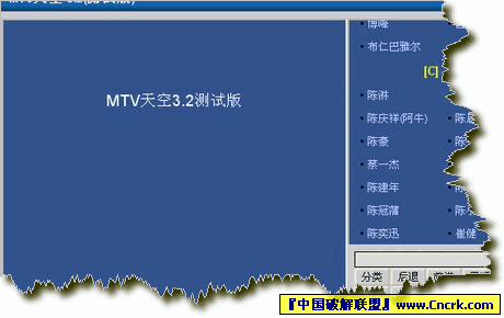MTV天空 v3.2 绿色测试版 MTV天空3.2版收集了8.5万首海量级MTV。本软件是目前网络上MTV最全,MTV量最多的MTV欣赏与下载软件。可将下载后的MTV用转换软件制作成