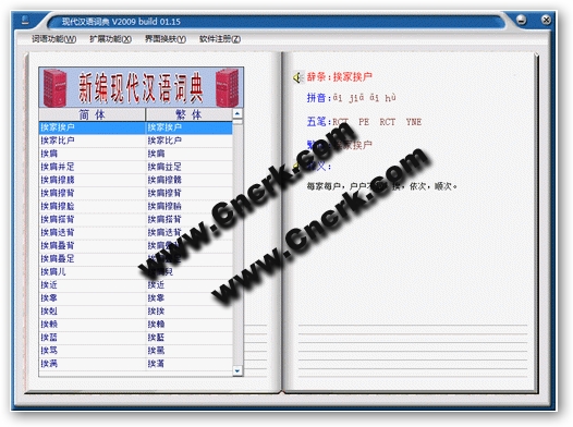 〖现代汉语词典〗软件是一个精巧、全面、新颖的文科工具。软件收集了新华词典、现代汉语词典的所有的词语。词语不断新增添加,与时代同步。资料浩瀚,数据量大,全面收集,权威、科学。是一个优秀的学习工具助手。软件支持模糊查询、支持升序降序排列,支持刷新、支持在线升级。详尽、齐全、细致、深入。软件使用方便、快捷、高效。软件美观、精致、绿色、环保、可完全卸载,随时升级。请及时联系澄海市夫子电脑软件工作室,或请访问软件网站,下载更多精彩,并获得软件的随时升级服务。