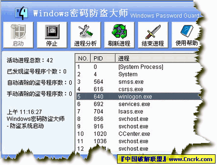 Windows密码防盗大师使用VB、VC混合编程开发。VB实现程序界面部分,负责用户互交、系统进程枚举、接收处理DLL返回的数据等。VC实现盗号程序检测和进程模块分析部分,具体分别有两个DLL实现。介于技术保密的考虑,在此不作详细介绍。
