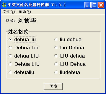中英文姓名批量转换器实现批量翻译中文姓名为英文(汉语拼音),支持多种英文格式(如:名字+姓氏、姓氏+名字等),内置3500中文字库,可应用于人力资源、办公文秘、旅游公司涉外旅游登记等中英文名字批量处理,支持成千上万个名字批量转换,鼠标一点,瞬间完成。