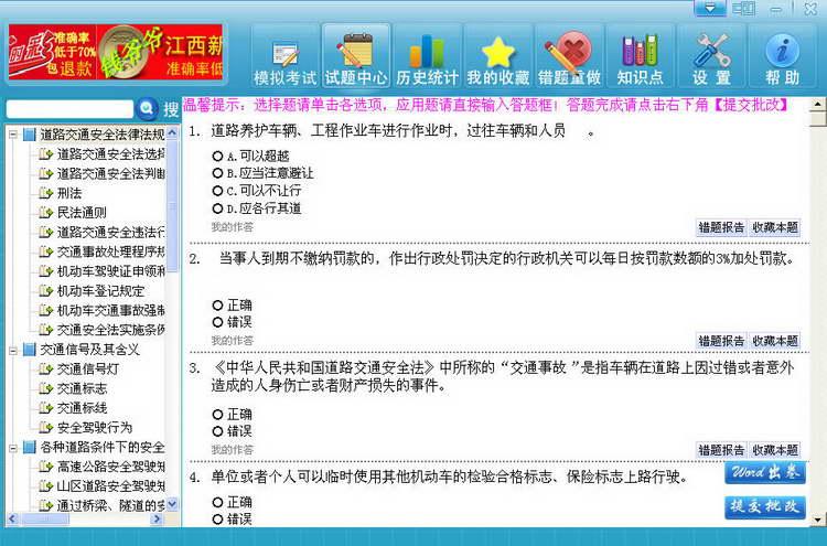 按考试的科目、章节进行分类练习,针对性强。覆盖了应考的全部知识点。点击树形目录、它会自动展开,在相应的章节上双击,会出现此章节的试题“考试界面”,您可以针对此章节进行专项练习了。