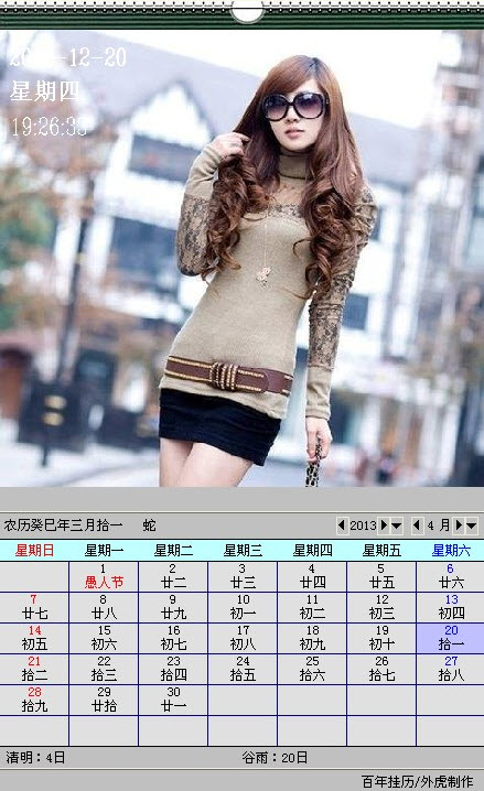 外虎百年写真挂历可以显示从1901年到2200年的200年间的公立和农历日期。包括常见的节日,节气以及所属年份等!还可以对挂历背景图片进行编辑,来制作属于自己的个人写真挂历。