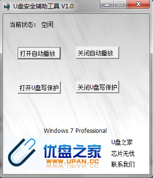 U盘安全辅助工具 1.1绿色版 U盘安全辅助工具支持windows xp、win7操作系统,工具小巧绿色,无须安装,解压即用。