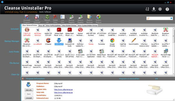 Cleanse Uninstaller Pro是一个卸载软件,可以查找出系统中潜在的软件并删除它们,可以通过自动扫描注册表来发现隐藏的程序,且具备备份和恢复注册表的功能,可防止因为意外卸载造成的系统故障。