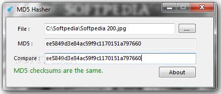 MD5哈希值检测(MD5 Hasher) V1.0 绿色版 一个非常小巧的哈希校验工具,以帮助你检查出任何文件的MD5校验。用户所作的只需要加载这个文件就可以看到md5哈希值,使用本软件比较值是否一致。从而确认文件的安全性。